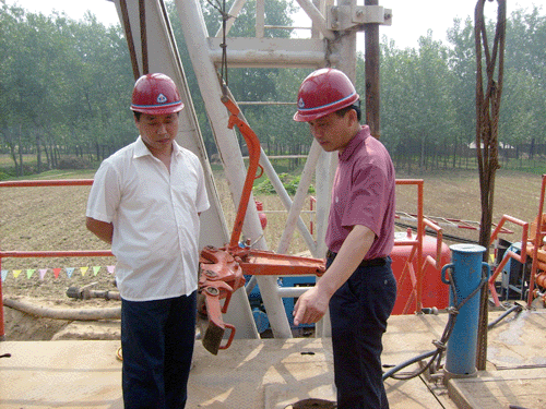 會后,王總一行又冒雨前往工地現場。仔細檢查了井場的設施情況及各種資料,同時勉勵大家:恪守職責嚴把質量關,遵守各項規章制度,力爭做出一個模范工程.