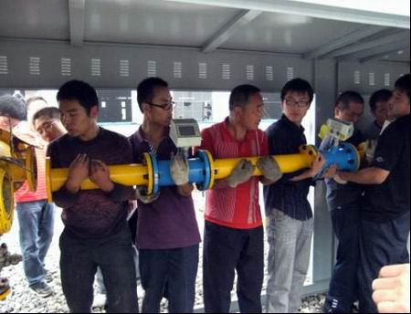 先是將以前的調(diào)壓柜拆掉,雖然安裝調(diào)壓柜的地方都是軟泥,但是大家已經(jīng)顧不得臟了,你扛我抬,僅用了十幾分鐘的時(shí)間就完成了全部拆卸。然后是搬運(yùn)到新地點(diǎn)重新安裝,按照?qǐng)D紙的設(shè)計(jì),大家在黃耀武經(jīng)理的指揮下,對(duì)調(diào)壓柜內(nèi)部的零件進(jìn)行了重新拼裝。擰螺絲的擰螺絲,遞工具的遞工具,每個(gè)人都在認(rèn)真地干著自己的工作。雖然頭上淋著小雨,鞋底沾滿泥濘,但是大家的工作熱情卻依舊高漲,為了用戶的用氣安全,擰緊每一個(gè)螺栓,放正每一個(gè)墊片……大家的臉上滿是水珠,已經(jīng)分不清是雨水還是汗水,為了盡快完成改裝,不耽誤用戶的生產(chǎn)用氣,工作一直持續(xù)到將近下午一點(diǎn)鐘,雖然大家都是又熱又累,但是看著自己的勞動(dòng)成果,大家都發(fā)自內(nèi)心地笑了。